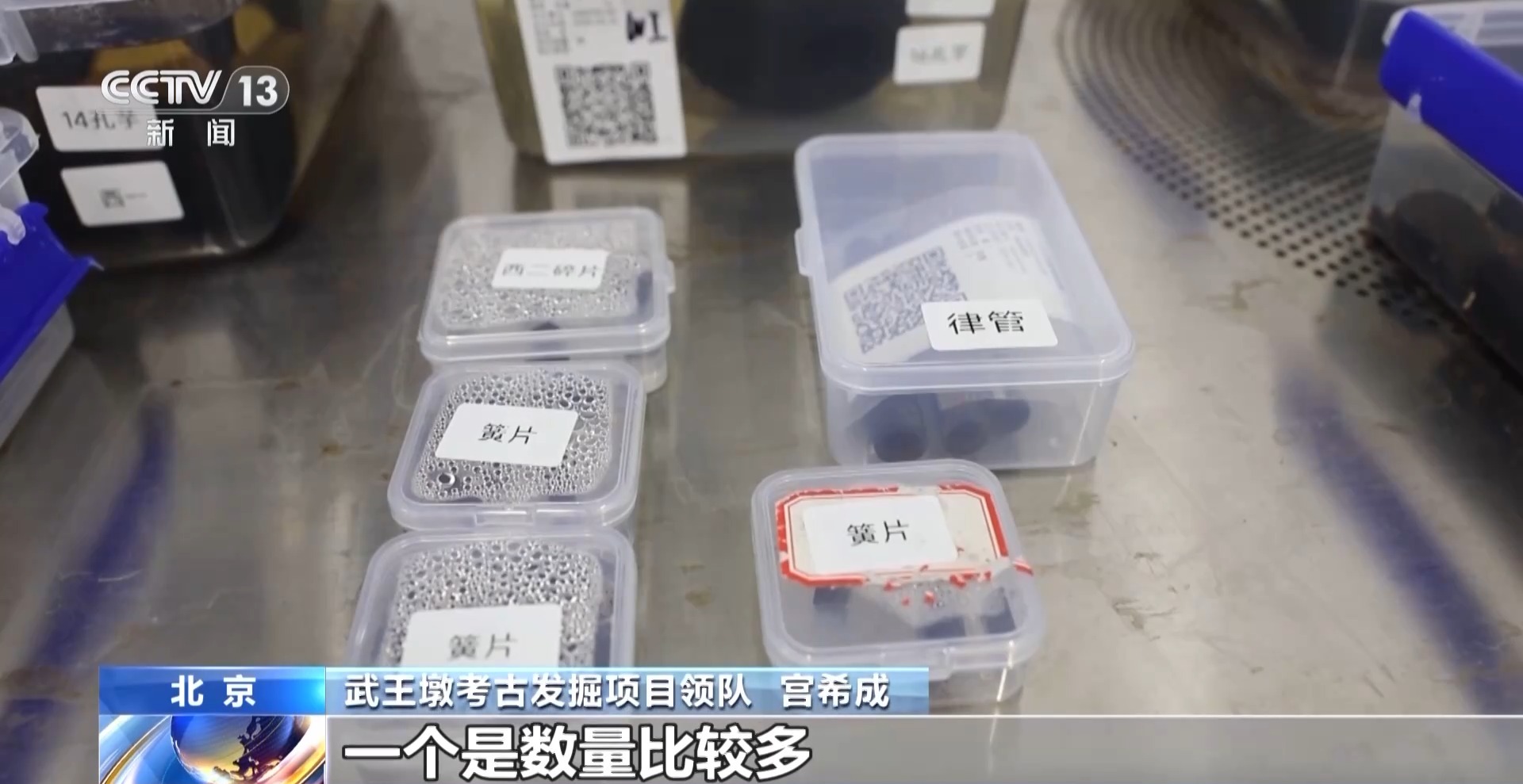 *武王墩考古發掘項目領隊 宮希成:*一個是數量比較多,第二是種類也比較多。跟過去的發現相比,絲竹類的樂器明顯數量比較多。到底是當時禮樂制度上的變化,還是時代特徵上的變化,將來會做深入的研究和闡釋。