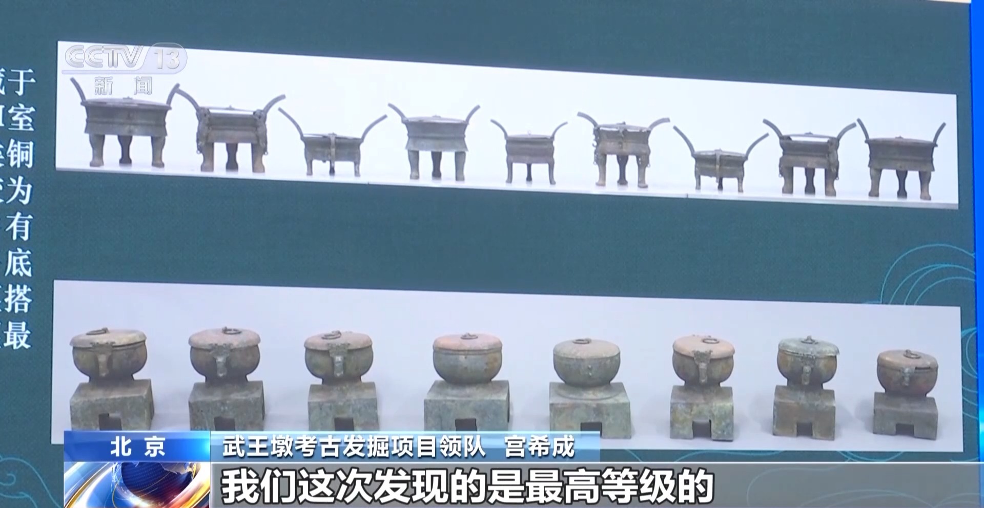 *武王墩考古發掘項目領隊 宮希成:*過去在考古發現當中,最多的有七鼎六簋這種配置,這次發現的是最高等級的,配置數量最多。我們可以根據這些對照文獻記載上不是很清楚的使用方法,能夠對其有更清楚的瞭解。