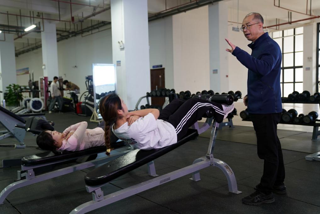 2月17日,在廣西體育高等專科學校,韋軍在指導學生進行體育鍛煉。新華社記者 陳露緣 攝