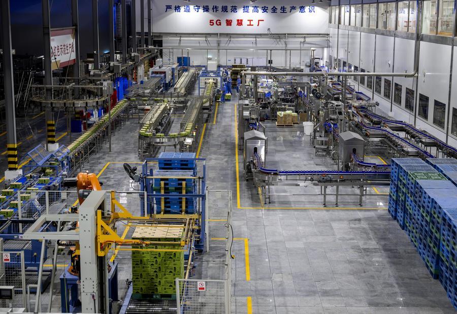這是盼盼食品集團的5G智慧工廠飲料自動化生產車間(2024年8月23日攝)。盼盼食品集團年營收81億元,產品遠銷50多個國家和地區。新華社記者 魏培全 攝