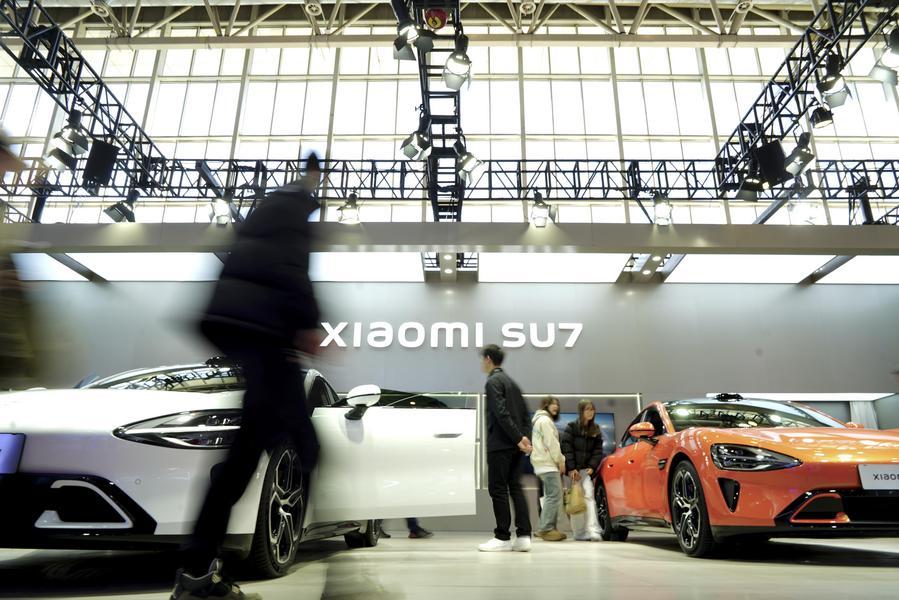 2024年11月28日,人們在第二屆中國國際供應鏈促進博覽會智能汽車鏈展區小米汽車展台參觀。新華社發(那宇奇攝)