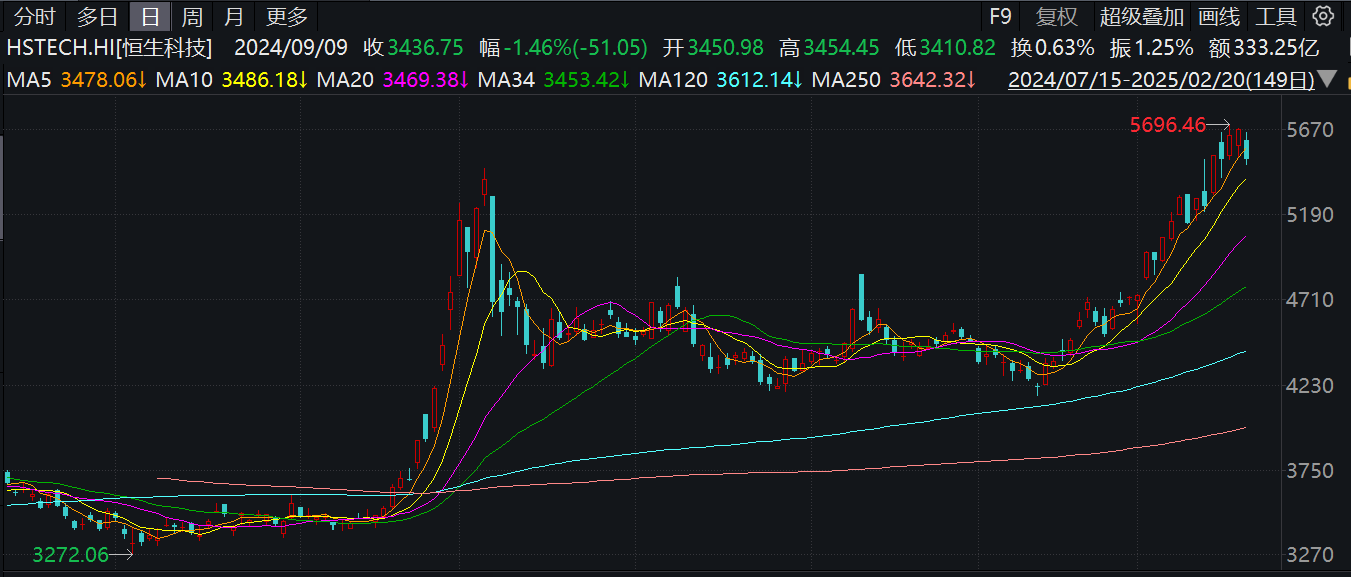 消息面上,摩根士丹利策略師對中國股市改持更樂觀的觀點,預測在技術突破的推動下,中國股市的漲勢將更可持續。該行將MSCI中國從低配上調至平配,將2025年MSCI中國指數目標上調至77,將2025年恒生指數目標上調至24000點。花旗亦發表報告,將恒指今年上半年底目標由21000點上調至23800點,年底目標則由22000點上調至24500點。