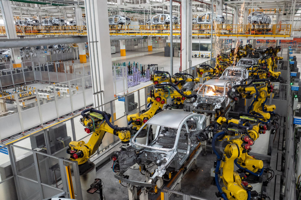 這是2024年3月21日在比亞迪長沙雨花工廠拍攝的自動化生產線。2024年中國新能源汽車產量突破1300萬輛,人工智能、數字經濟等領域創新成果持續湧現,處處都能看到民營企業大顯身手。
