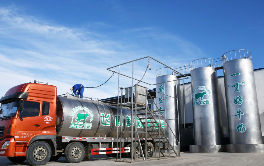 在黑龍江飛鶴乳業股份有限公司專屬甘南瑞信達原生態牧場,工作人員在檢查一輛剛裝完鮮奶的全封閉低温安全運輸車(2018年10月30日攝)。長期以來,一批民營企業推動打造農業全產業鏈,帶動農民就業增收。通過技術創新和品牌建設,提升產品質量,為鄉村振興注入強勁動能。