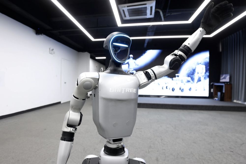 2024年11月7日在杭州宇樹科技有限公司拍攝的Unitree G1人形智能體。近年來,國內民營科技企業對機器人、人工智能等領域的研發,大幅提升了生產效率,帶動相關學科發展,培養跨領域創新人才,為加快培育新質生產力注入了強勁動力。