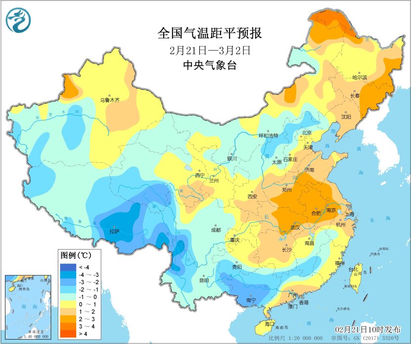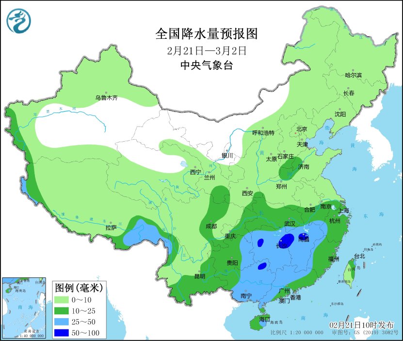 未來10天(2月21日至3月2日),江漢、江淮、江南、華南及貴州等地累計降水量有10~30毫米,其中江南西北部、廣西北部等地的部分地區有40~70毫米,上述部分地區降水量較常年同期偏多4~8成,我國其餘大部地區降水偏少。
