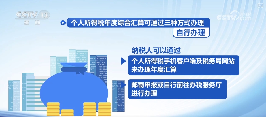 據介紹,個人所得税年度綜合彙算可通過自行辦理、通過任職受僱單位代為辦理、委託受託人辦理三種方式。