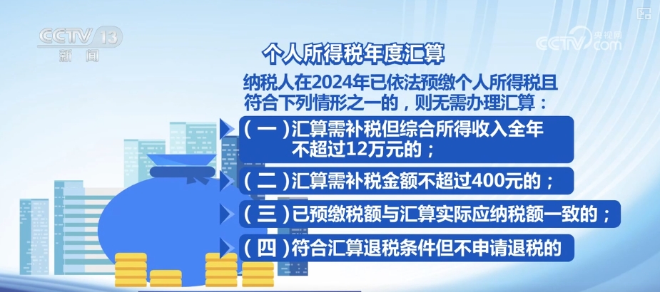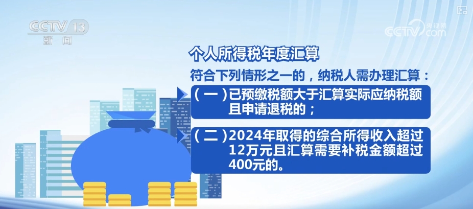 納税人可以登錄個人所得税手機客户端,系統會自動計算出您的應補或應退的税款。簡單來説,如果您在2024年綜合所得收入不超過12萬元,不論系統顯示您的補税金額是多少,都無需辦理年度彙算。如果您年度應補税款是不超過400元的,則也無需辦理彙算。