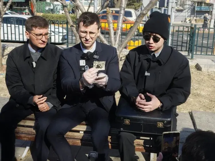 在蘇州河邊,四行倉庫抗戰紀念館門前,馬庫斯一行三人拿着老照片,想要探尋那段歷史。在上海四行倉庫抗戰紀念館參觀完畢後,三人在留言簿上用中文留言:“我們會告訴全世界,我們永遠不會忘記”。