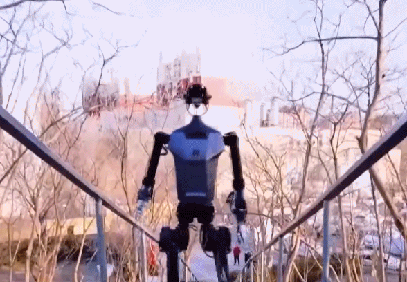 最近,“天工”人形機器人在户外真實地形測試中,成功登上北京通州區海子牆公園最高點,實現了100多個台階的連續攀爬,成為全球首例可在室外連續攀爬多級階梯的人形機器人。