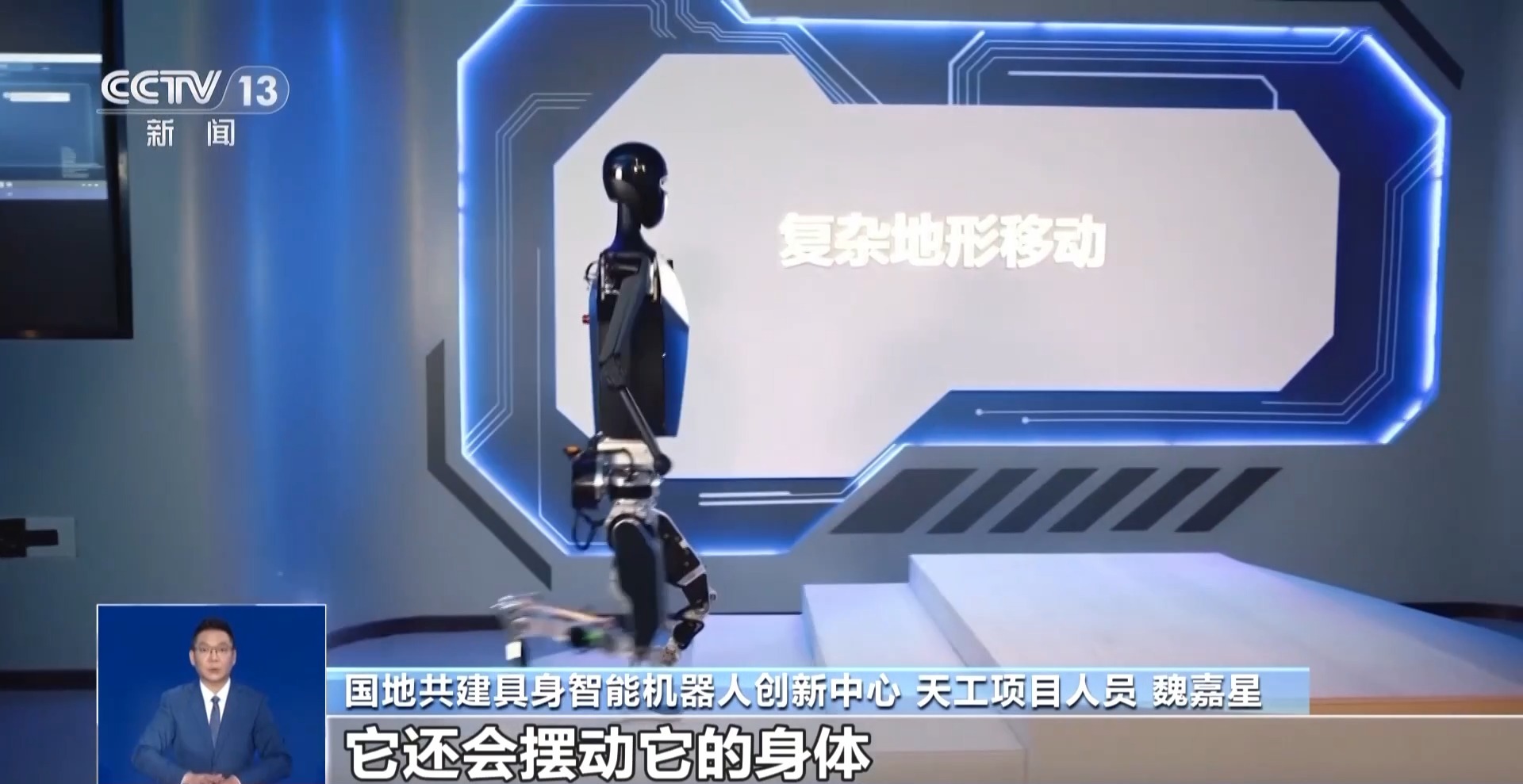人形機器人“天工”,是由工信部和北京市共同支持的具身智能機器人創新中心設計研發的。
