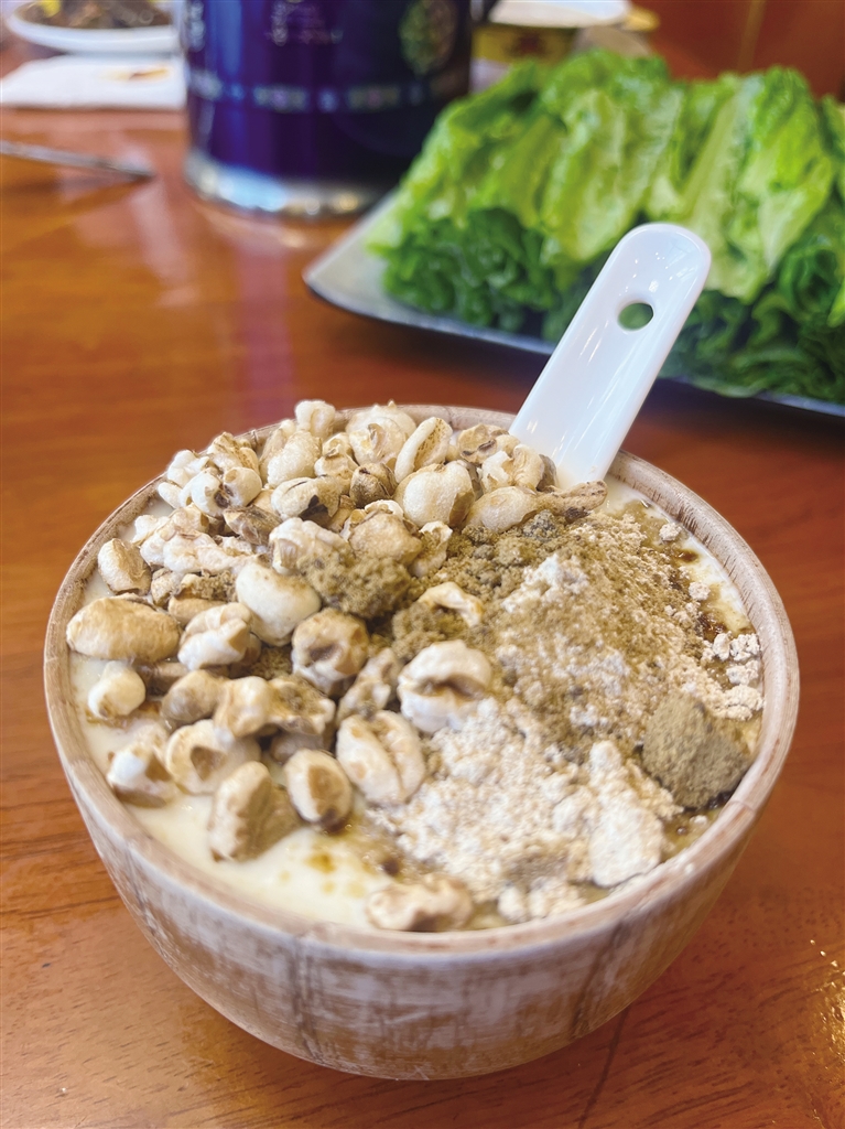 當然,來到西藏一定得嚐嚐這裏的犛牛酸奶。由純犛牛奶發酵而成,口感濃稠細膩,奶香濃郁,營養豐富。通常,原味的犛牛酸奶味道偏酸,需搭配白糖一起食用,也可以根據個人口味加入蜂蜜、炒青稞、人蔘果等,口感更加豐富、易接受。
