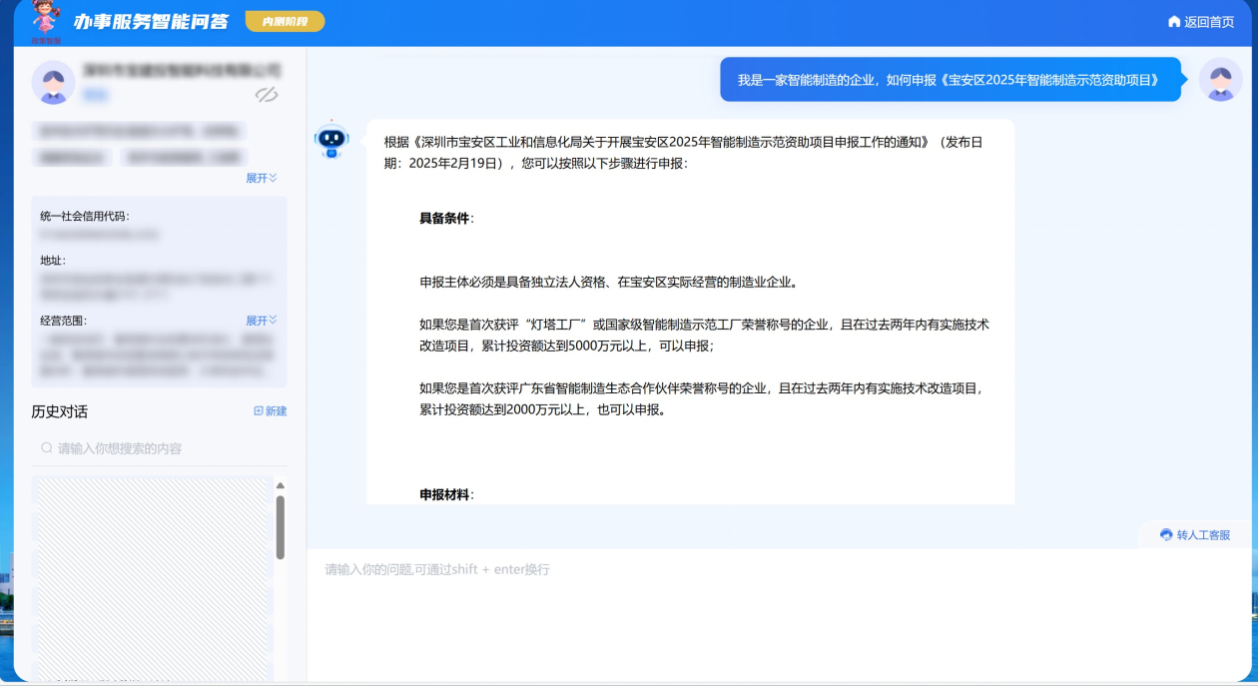 目前,基於騰訊雲大模型知識引擎,寶安政務知識庫已覆蓋全區14個領域、20個行業3萬餘條政務服務知識,並整合了60多種原子能力,可結合業務場景需要快速部署智能應用,已經在民生訴求、企業服務、政務辦公、社會治理等31個業務場景展開落地。(勃潺)