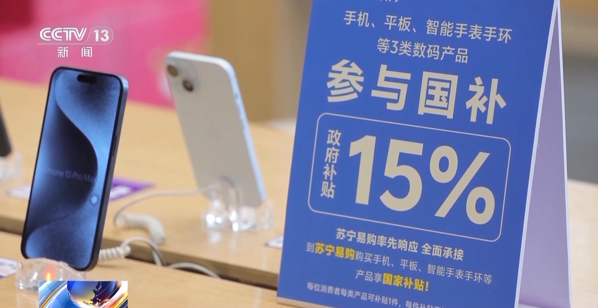 上海市楊浦區某家電賣場數碼品類負責人 陳晨*:*國補開始以來到現在近一個月的時間,基本上我們的手機銷售增長還是非常明顯的,基本上同比增長都在108%,電腦產品增長幅度更大一些,大概在280%