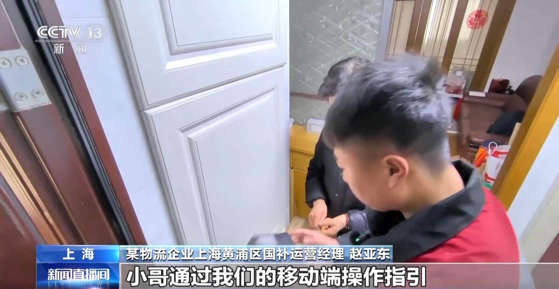 *某物流企業上海黃浦區國補運營經理 趙亞東:*有專門的國補訂單專員去為客户配送訂單。在配送中,小哥通過我們的移動端操作指引,可以把訂單一次性完成。