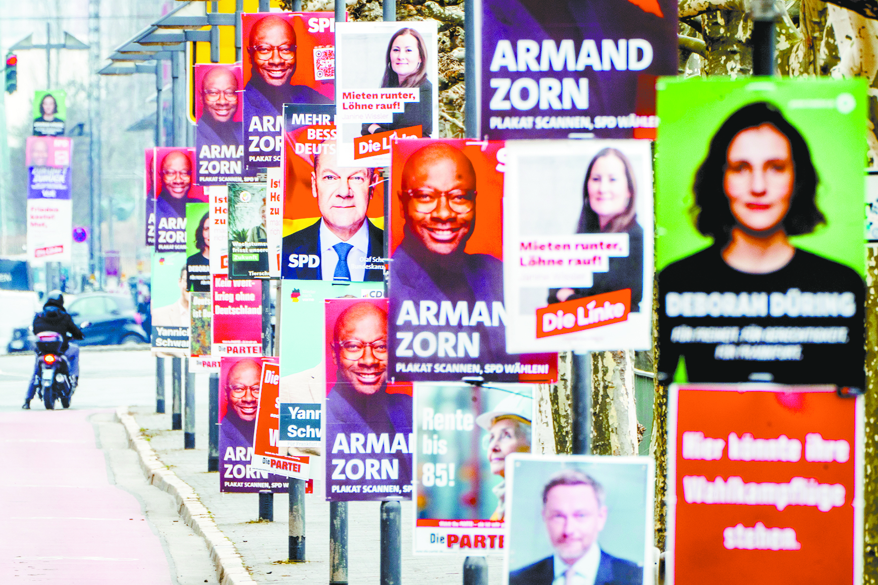 【環球時報駐德國特約記者 青木 環球時報特約記者 王逸】當地時間23日,德國將舉行新一屆聯邦議院選舉。德國各主要政黨候選人近兩天紛紛抓緊時間進行選前衝刺,以爭取最後的選票。整個歐洲都將目光聚集在德國這次選舉上。分析認為,目前歐洲正處在關鍵的十字路口,被稱為歐盟發動機之一的德國的選情牽動整個歐洲。美國“政府效率部”負責人馬斯克日前多次公開為德國極右翼選擇黨站台,並稱德國選舉關乎歐洲命運。德國最新民調顯示,各黨派支持率相差並不大,且在烏克蘭危機、邊境與非法移民、削減能源成本、放鬆“債務剎車”等重大議題上分歧嚴重,能否達成一致存在較大疑問。此外,目前沒有一個黨派支持率過半,因此選後組建新政府可能要經歷艱難談判,會拖延數週甚至幾個月,這將給德國造成較長時間的政治癱瘓,對德國政治的後續走向進一步增加不確定性。