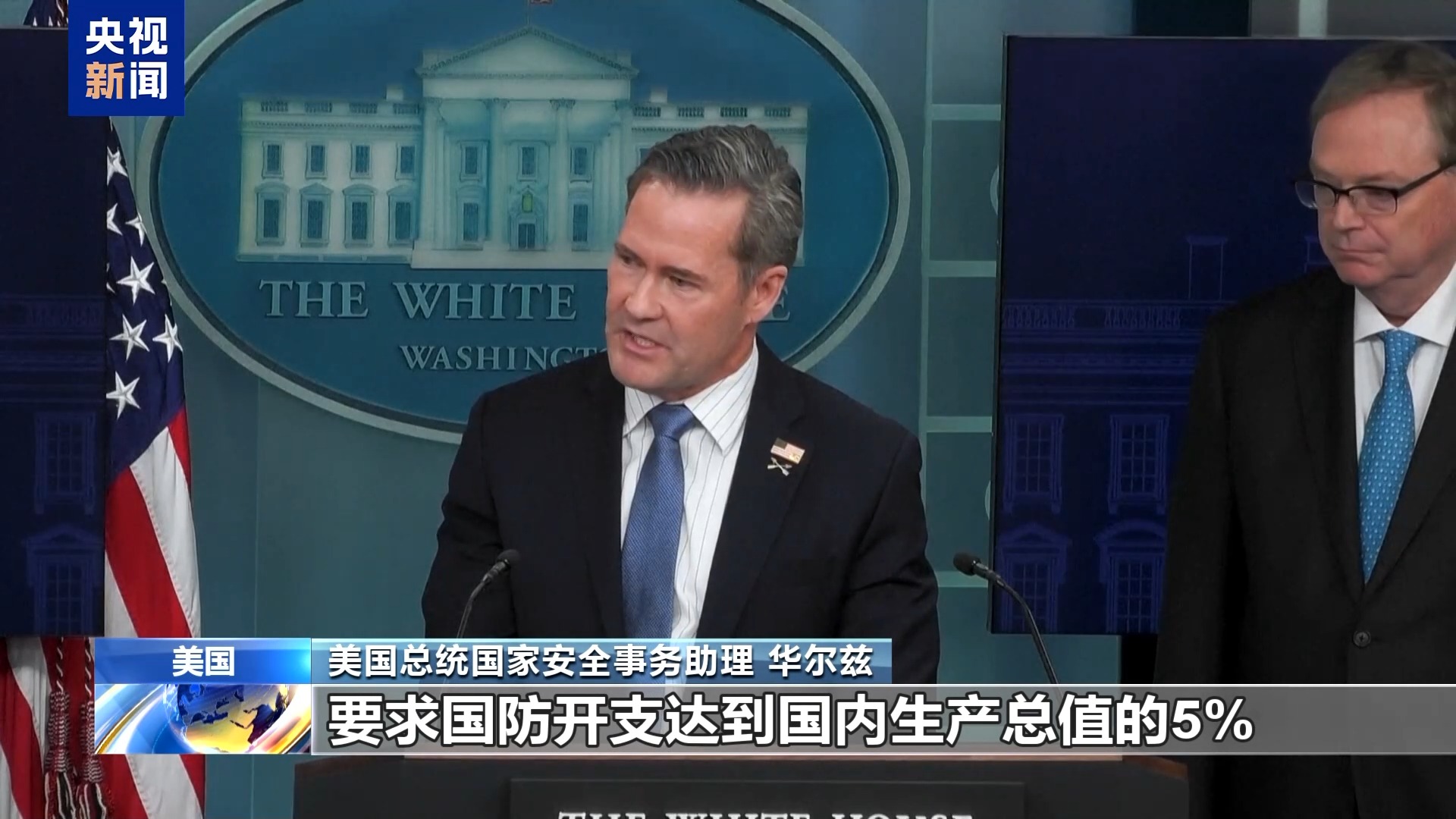 *美國總統國家安全事務助理 華爾茲:*在今年6月的北約峯會前需要百分百完成這一目標,然後再討論超越它。特朗普總統説過要求國防開支達到國內生產總值的5%。作為盟友,歐洲需要加強自身防務。