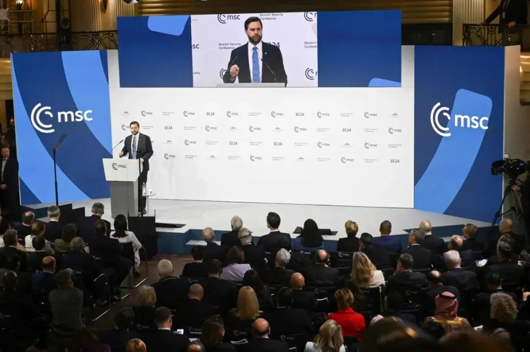 當地時間2月14日,美國副總統萬斯在慕尼黑安全會議上發表講話(來源:參考消息)