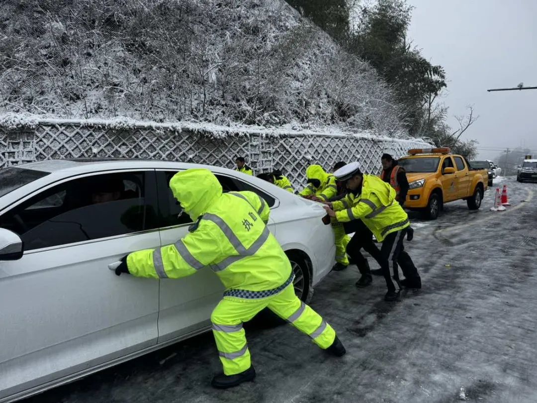 2月20日19時許,昌化派出所和交警昌化中隊接報警求:“我們車撞了,困在雪地裏無法動彈,請求幫助。”民警曹偉、輔警王佳瑋立即趕赴現場,同步聯動狼行公益救援隊一同上山救援。到達現場後,發現兩輛車因路面積雪結冰,打滑後撞至山體,車輛有不同程度受損,幸好兩輛車上的五人均未受傷,後將五名遊客安全帶至派出所,交通事故移交至交警處理。