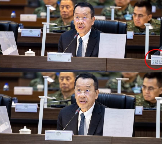 據報道,台防務部門21日發佈“漢光41號演習”高階幹部圖上兵推完成的新聞,附圖為顧立雄致辭畫面,而畫面右側出現鄰座中英對照名牌,寫着“印太聯五次長”,英文則為“J5 Maj General”,雖然僅為少將,但美軍現役將領在台防務部門負責人身旁參與“漢光”兵推,台軍中官員稱“前所未見”。聯合新聞網注意到,“軍聞社”目前已更換照片角度。