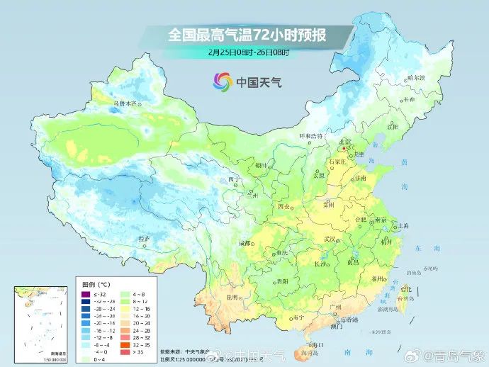 明天,北方將率先開啓升温,氣温轉為偏高;而南方的回暖則略微滯後。*一直到27日至28日,本輪迴暖會達到鼎盛階段,中東部氣温較常年同期將顯著偏高。*屆時,最高氣温10℃線將北抬到遼寧北部一帶,黃淮及其以南地區或現大片20℃或25℃以上的區域,寒涼消退,春意浮現。