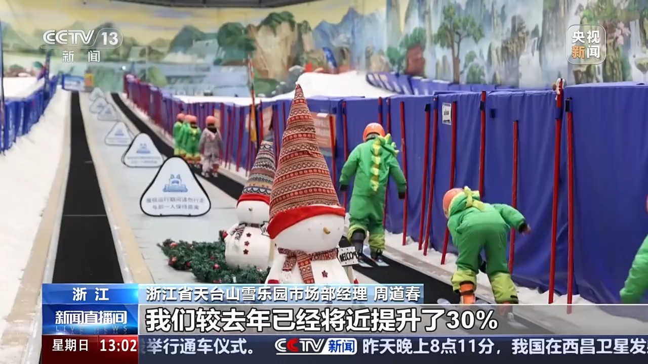 *浙江省天台山雪樂園市場部經理 周道春:*春節期間,整個客流來説的話,我們較去年已經將近提升了30%。