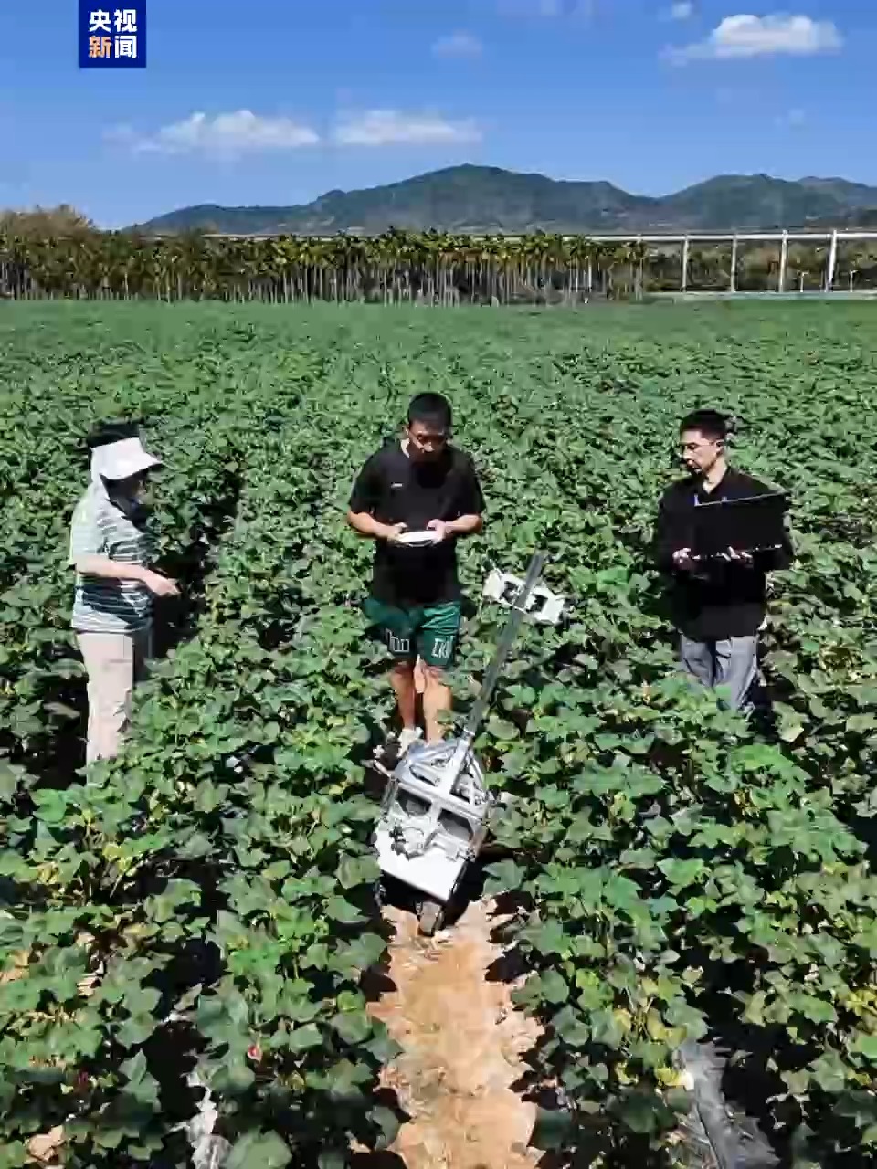 *總枱央視記者 陳博:*在南繁基地的這塊棉田裏,一羣年輕人操作着機器人,給棉花植株拍視頻。他們也被稱為農田裏的AI訓練師。