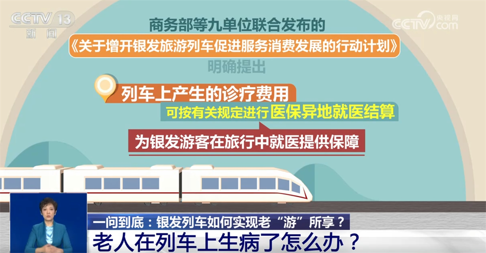 日前,商務部等九單位聯合發佈的增開銀髮旅遊列車的行動計劃明確提出,列車上產生的診療費用可按有關規定進行醫保異地就醫結算,為銀髮遊客在旅行中就醫提供了保障。