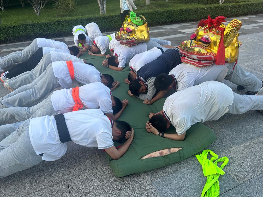 圖為天府第七中學北獅隊隊員在練習舞獅