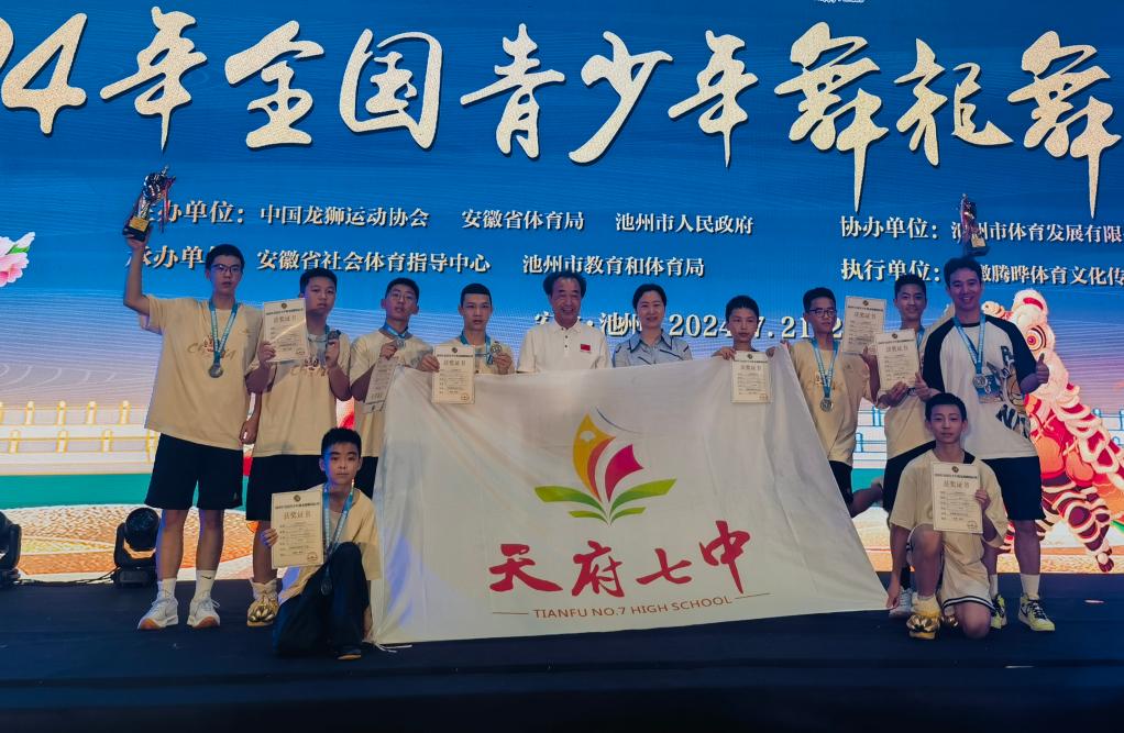 圖為天府第七中學北獅隊在2024年全國青少年舞龍舞獅錦標賽上獲得創意龍獅冠軍