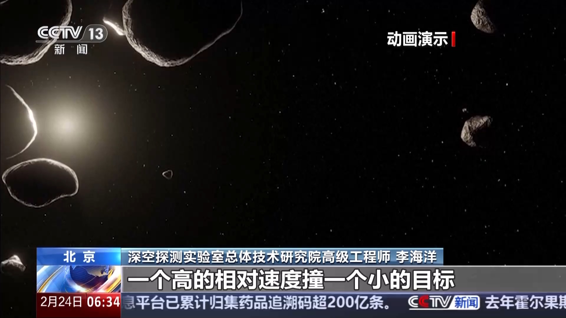 *深空探測實驗室總體技術研究院高級工程師 李海洋:*我們想要改變小行星的軌跡,對它撞擊的相對速度是一定要很快的,但同時小行星又比較小,一個高的相對速度撞一個小的目標是一個技術上很難的點。