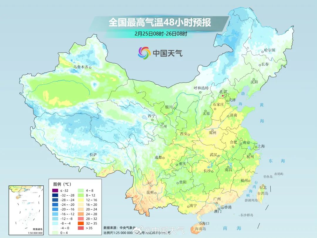 今天,北方將率先開啓升温,氣温轉為偏高;而南方的回暖則略微滯後。一直到27日至28日,本輪迴暖會達到鼎盛階段,中東部氣温較常年同期將顯著偏高。屆時,最高氣温10℃線將北抬到遼寧北部一帶,黃淮及其以南地區或現大片20℃或25℃以上的區域,寒涼消退,春意浮現。