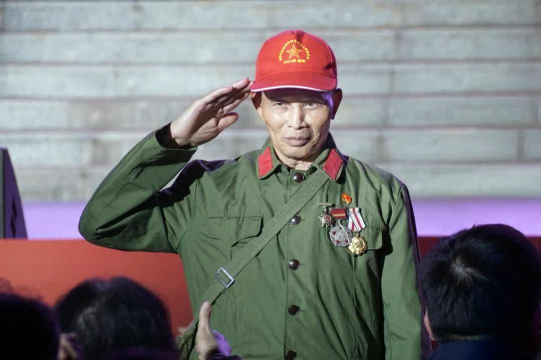 龍旭堂、歐仔萬兩位一等功臣來到現場,為晚會增添了莊重而崇高的色彩。此外,96歲高齡的“共和國勳章”獲得者李延年同志未能來到現場,通過視頻的形式向晚會送來了真誠祝福。