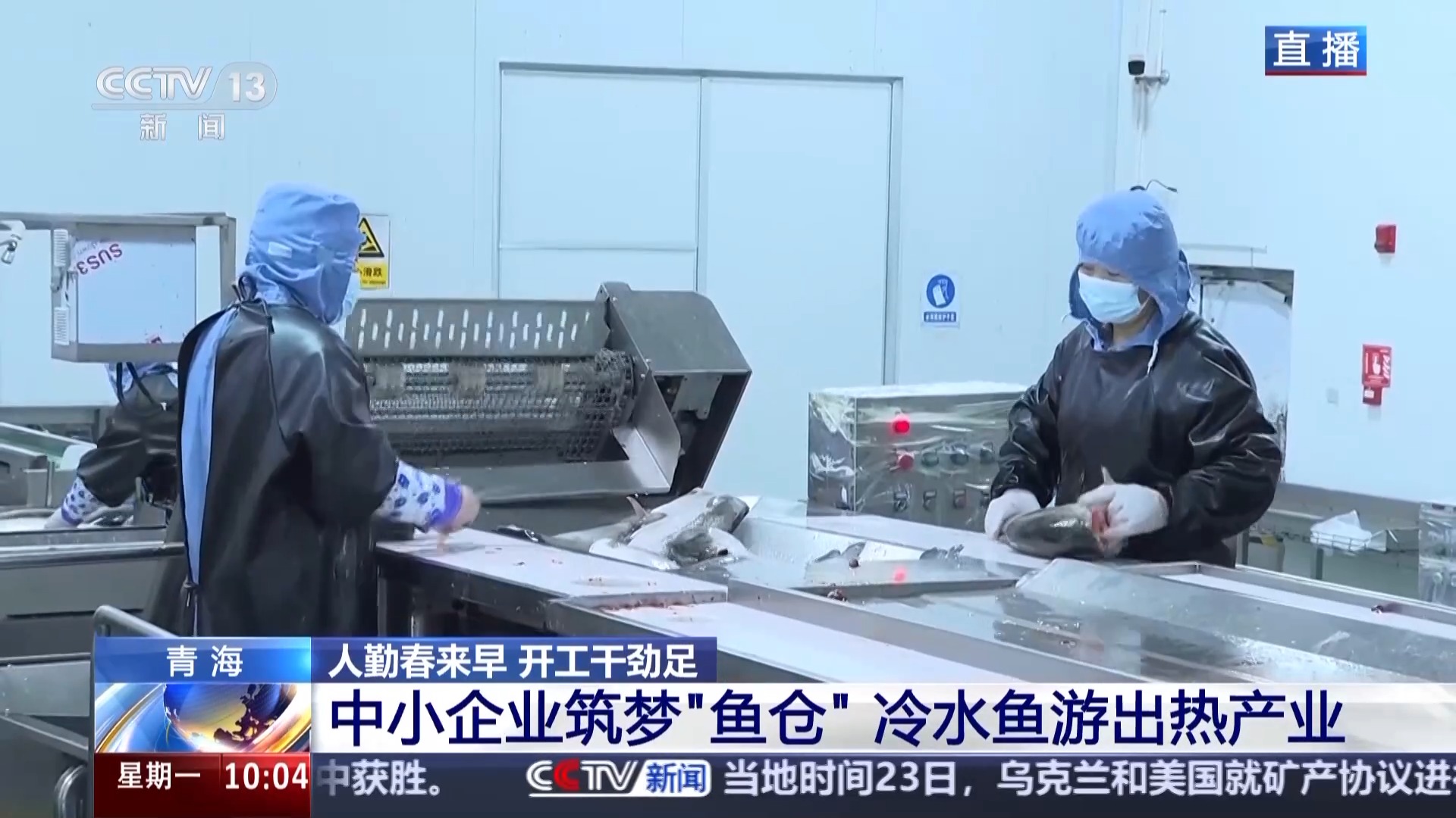 *總枱記者 崔建軍:*那這些三文魚要運送到哪裏呢?在20公里外的加工廠裏,一條魚從捕撈、回廠清洗,到加工、出廠,全程不到4小時。這些中小企業自主研發的魚內臟處理線、智能包裝機,讓效率比傳統方式提升1.6倍。特別要提到的是,這些企業今年投入使用了區塊鏈溯源系統,讓每條三文魚帶着“電子護照”出海,外國客户掃一掃,就能看到這條魚吃了多少頓“高原套餐”,遊過多少公里冷水域。讓從魚卵到餐桌,全產業鏈也更加具有可追溯性。