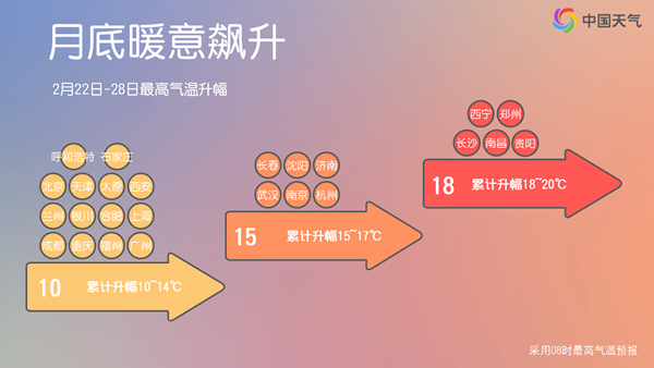 這輪大回暖也將推動季節轉換,江南多地有望在這輪迴暖中直接入春。但因為基礎氣温高,隨後即便有不是很強的冷空氣到來,也會導致3月初南方氣温有大幅波動,厚衣服還不能就此收起來,需警惕“倒春寒”突襲 。