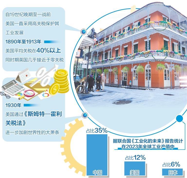 然而,自2018年開始的中美經貿摩擦與之前的案例大為不同,美國在很多生產領域已經喪失競爭優勢。按照聯合國《工業化的未來》報告統計,中國在2023年全球工業產值中佔比為35%,名列首位,美國次之(12%),日本第三(6%)。美通過提高關税限制從中國進口的相當比例產品,其自身並沒有能替代的產品,且中國之外也同樣沒有可替代的選擇。不僅如此,很多中國輸美產品的價格彈性很小,從經濟學角度而言,美國提高關税幾乎無法對中國造成實質性影響,但將被動增加美國消費者的成本,推高美通貨膨脹。