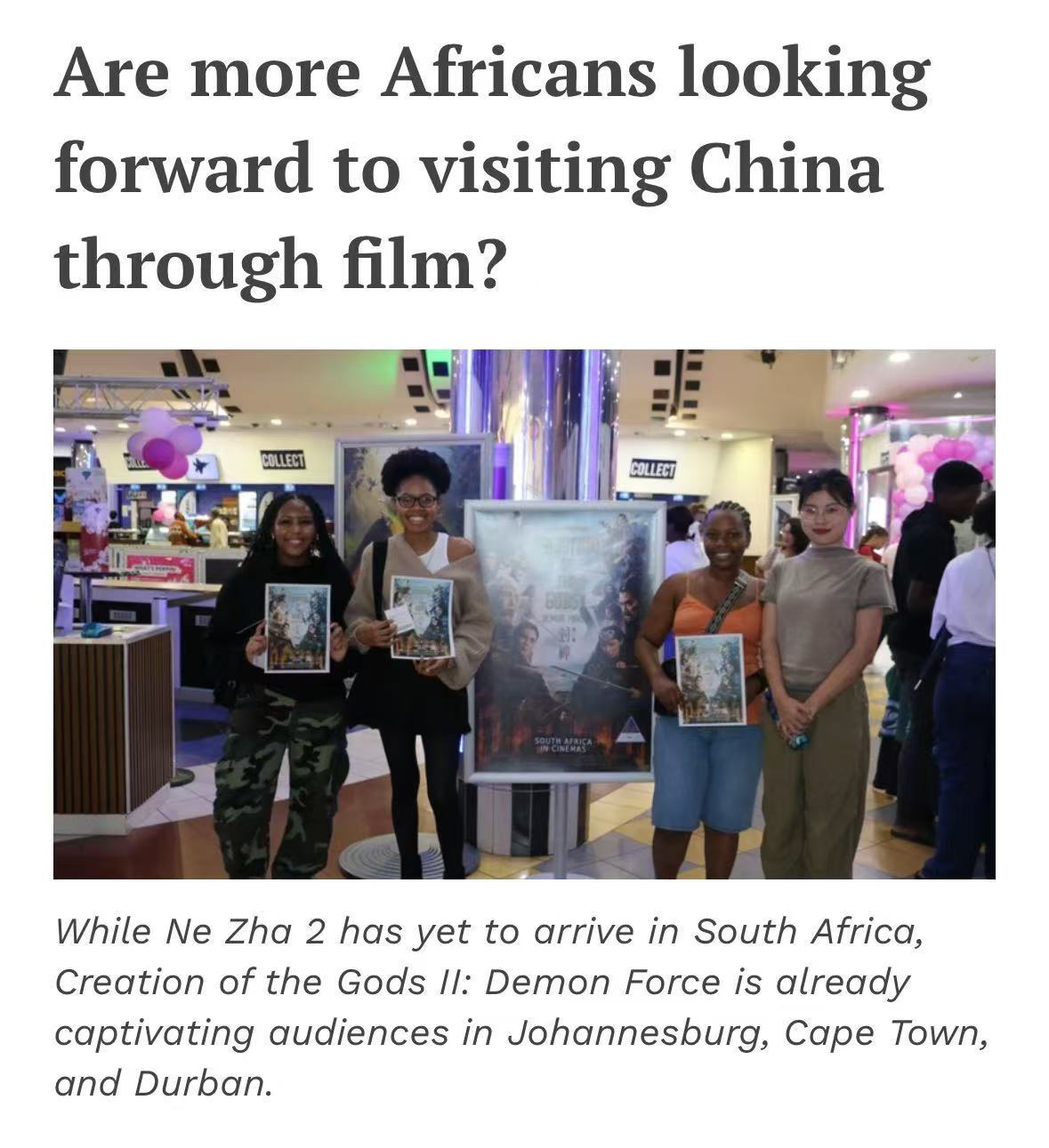 △南非獨立在線新聞網站報道:雖然《哪吒2》還未在南非上映,但是《封神第二部:戰火西岐》在南非多地引起轟動。