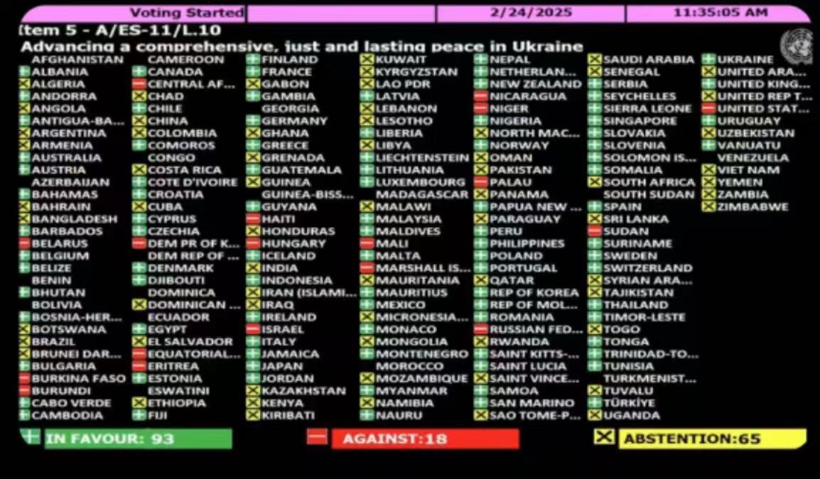 眾所周知,聯大決議不具備法律約束力,但有政治影響力,反映國際社會對俄烏衝突的看法。