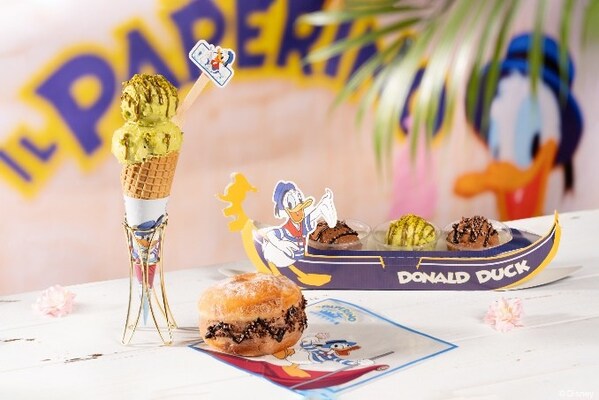 和煦春風裏,沒有什麼比在全新升級的"帕帕裏諾冰激凌"品嚐一勺手工製作的意式冰淇淋更愜意的事情了。唐老鴨在威尼斯經歷了一場奇妙冒險,在那裏他與家人朋友一起划着貢多拉船,探索意式冰淇淋的豐富風味和多重吃法。受這場冒險啓發,唐老鴨開設了"帕帕裏諾冰激凌”,邀請遊客步入一個充滿奇趣的冰淇淋世界。在這裏,遊客不僅能品嚐到經典冰淇淋和甜品,還能享受到多種風味濃郁和季節限定的意式冰淇淋,可以自由搭配蛋筒、甜甜圈三明治或是唐老鴨主題聖代杯。每一口都是一場甜蜜清新的舌尖之旅,帶領遊客踏上了唐老鴨的異國冒險之旅。
