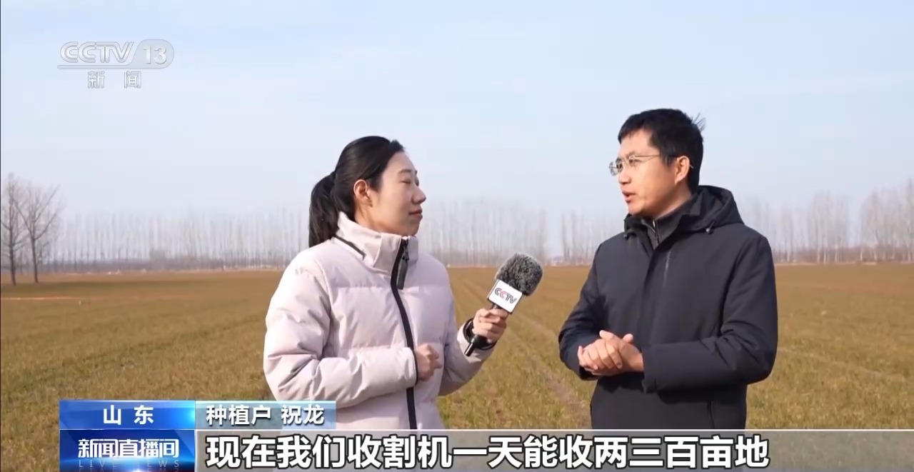 *種植户 祝龍:*現在我們收割機一天能收兩三百畝地,我一畝地可能只有五六百塊錢的收入,但是我有3000多畝地,當時他們(父母)也很驚訝,種地還能賺這麼多錢。