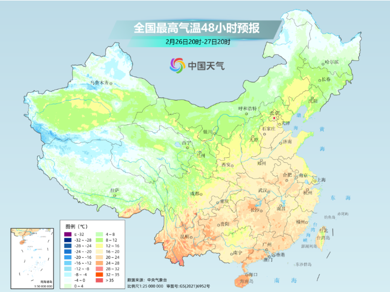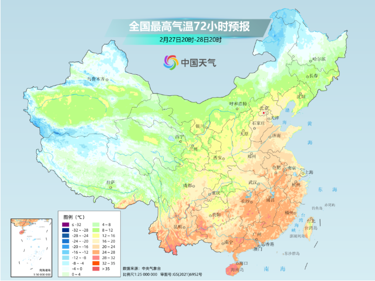 明天,南北方各地升温的步伐將調整一致,集體回暖。之後,我國氣温將開始大面積屢創新高,北方主要集中在27日至28日,南方創新高戰線會拉得更長一些,將延續到3月1日至2日。過程中,貴州到江南一帶累計升温幅度可達15至20℃,局地甚至超20℃。