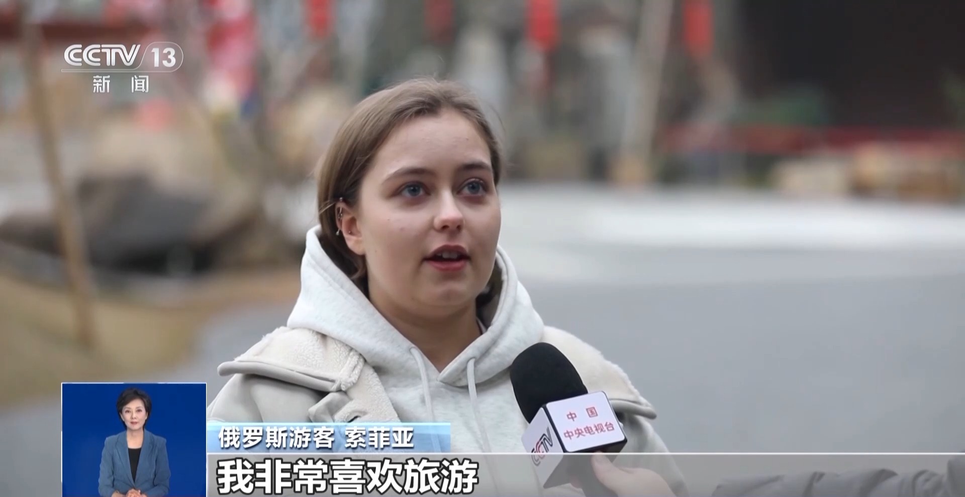 *俄羅斯遊客 索菲亞:*我非常喜歡旅遊,因為中國是一個非常大而神奇的國家,圍繞着這個國家可以看到不同的東西。旅遊是學習一個國家文化和傳統的重要組成部分。