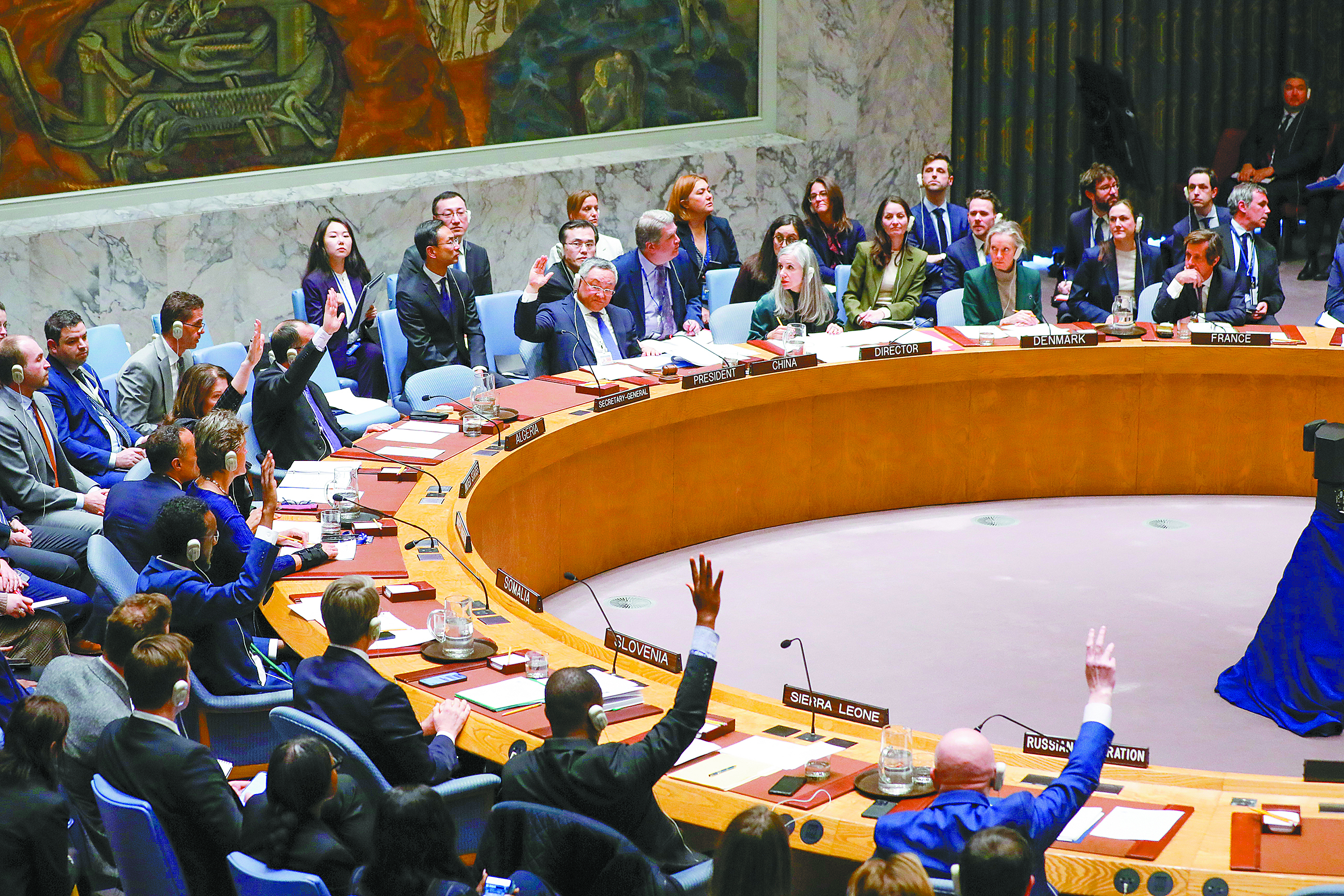 “幾小時後,戰場轉移到了安理會。”《紐約時報》稱,24日下午,美國在安理會提出一模一樣的決議草案。在經歷英國、法國試圖推遲表決失敗,歐盟和俄羅斯提出的修正案均遭否決後,安理會以10票贊成、0票反對、5票棄權的結果通過了這份決議。美國、中國、俄羅斯投下贊成票,英國、法國兩個安理會常任理事國和丹麥、希臘、斯洛文尼亞3個非常任理事國投了棄權票。