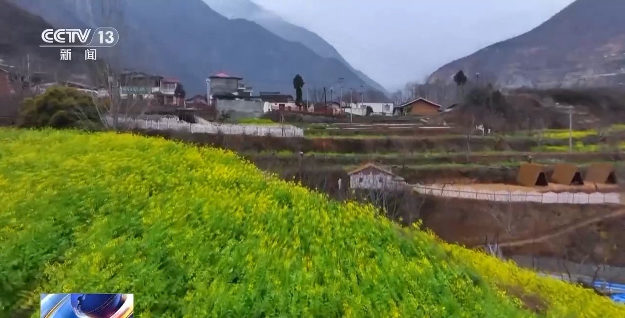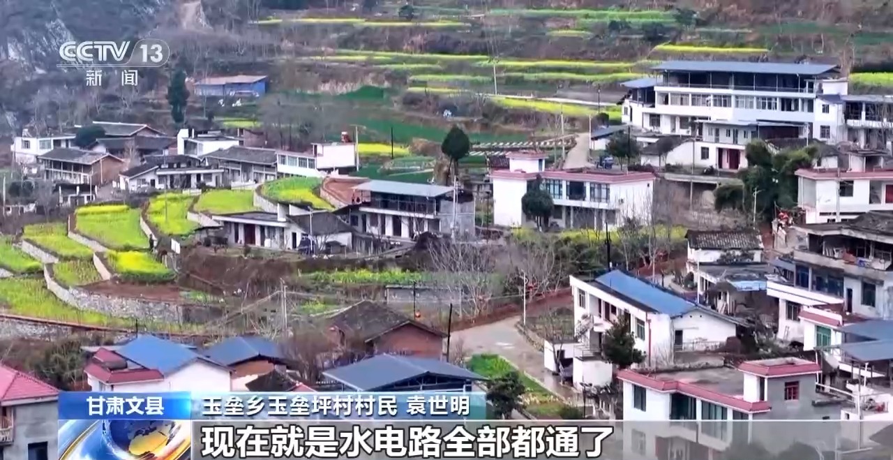 現在正值甘肅隴南文縣玉壘坪村的油菜花盛放的季節。文縣地處秦巴山區,是甘肅迎來春天最早的地方,但山大溝深的地理條件,也讓當地一度成為全省深度貧困縣,玉壘坪村更是在羣山環抱之中,交通極度不便。