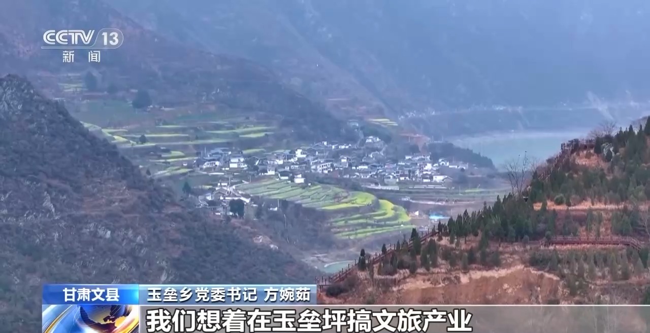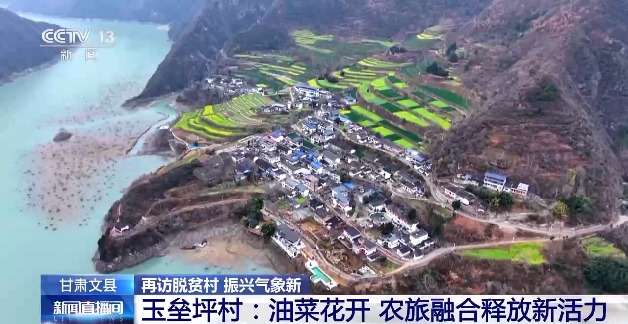 *總枱記者 馬麗:*走進文縣玉壘鄉玉壘坪村,春天的氣息撲面而來。眼前是一灣碧水,身後的層層梯田上,油菜花蔓延開來,遊客們在花田中穿梭,四溢的花香讓人心曠神怡。