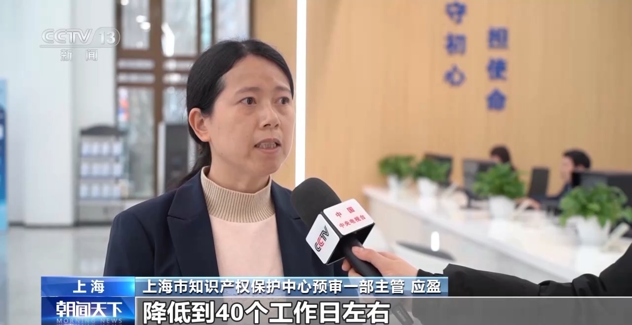 *上海市知識產權保護中心預審一部主管 應盈:*專利預審服務可以幫助企業更快獲得專利授權,平均週期可以從接近20個月降低到40個工作日左右。