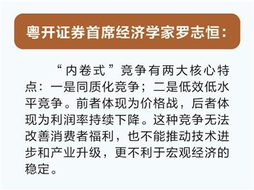 在粵開證券首席經濟學家羅志恆看來,“內卷式”競爭有兩大核心特點:一是同質化競爭;二是低效低水平競爭。前者體現為價格戰,後者體現為利潤率持續下降。“這種競爭無法改善消費者福利,也不能推動技術進步和產業升級,更不利於宏觀經濟的穩定。”羅志恆表示。
