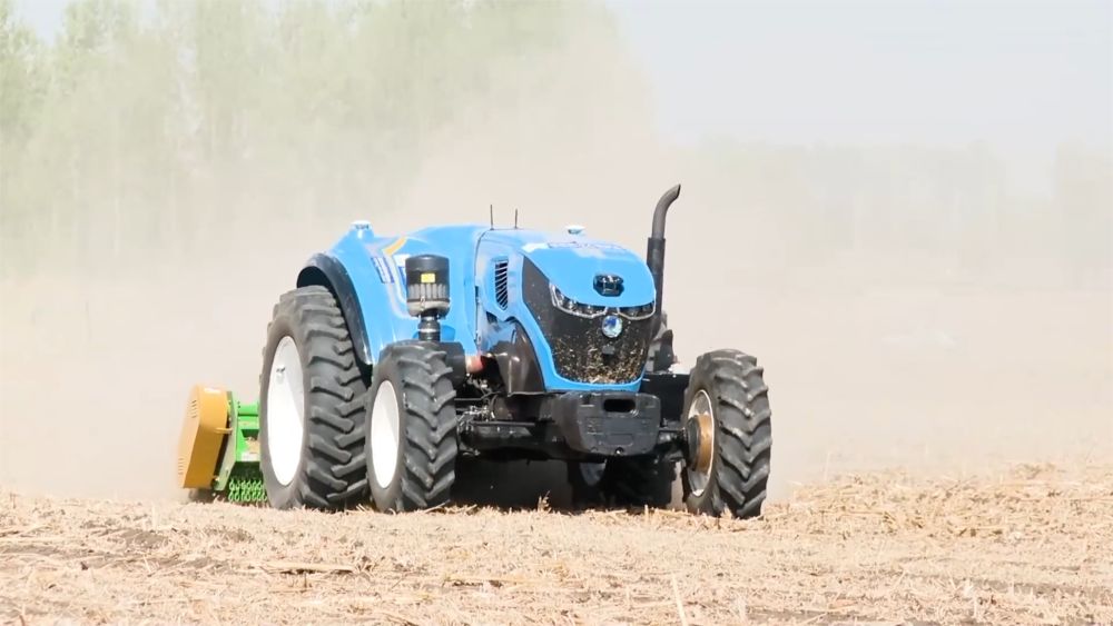 在吉林省公主嶺市,一台無人駕駛拖拉機正在進行整地作業。新華社發