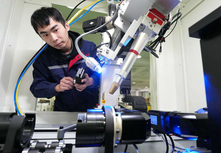 2025年1月7日,浙江省紹興市上虞區浙江創新激光設備有限公司技術人員在調試四軸聯動工作台激光焊接機。近年來,紹興市上虞區積極發展新質生產力,專精特新企業培育成效顯著,有效助力經濟發展。新華社記者 翁忻暘 攝