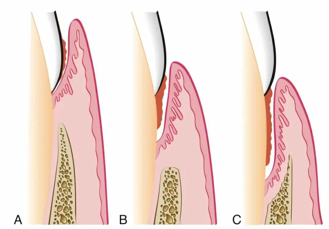 此外,製作不良的修復體比如貼面、牙冠等也可能形成難以清潔的衞生死角,進而增加炎症產生,導致牙齦附着的喪失和牙槽骨吸收。